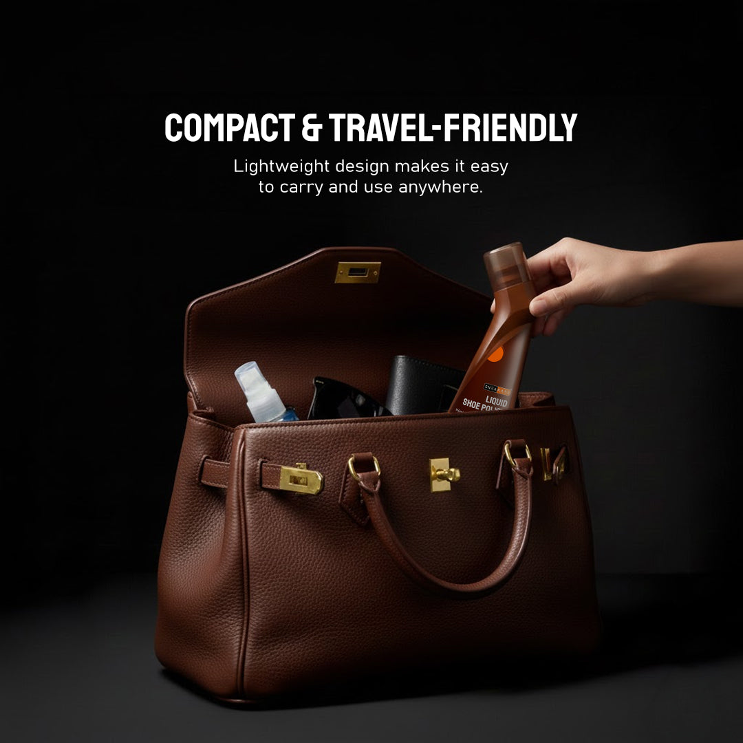 Meet the Sneakare Liquid Shoe Polish — a superior, 100 ml formula made with natural Carnauba wax for deep conditioning and instant shine. Unlike traditional polishes, it requires no buffing and absorbs quickly through its spill-proof applicator for a smooth, mess-free finish. Eco-friendly, solvent-free, and safe for all leather items, it instantly reconditions and revitalizes shoes, bags, belts, and wallets. Available in Black, Brown, and Neutral, its shine is made smarter.