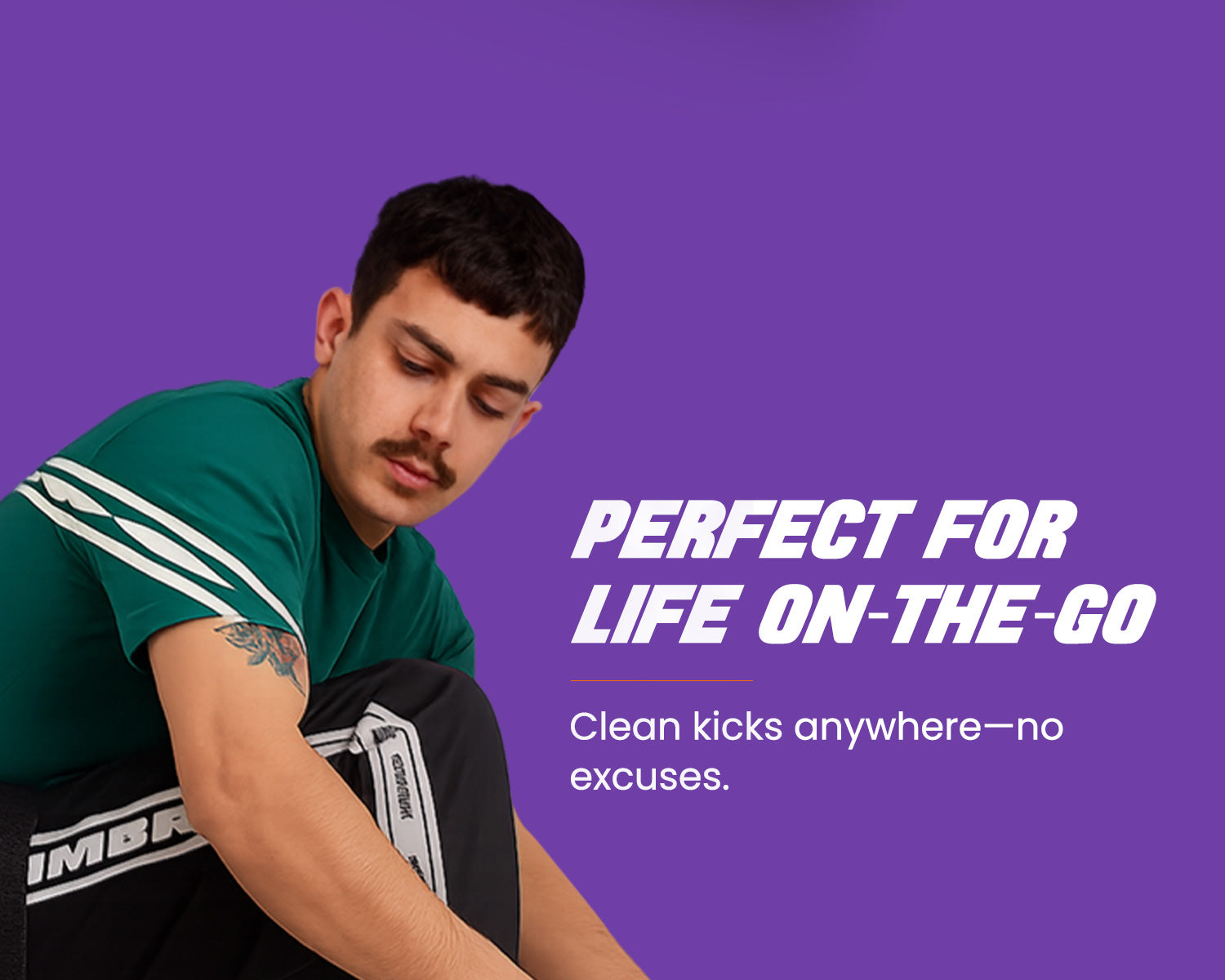They’re perfect for anyone always on the move — from frequent travellers to daily commuters. With 50 wipes in one resealable pack, you’ll always have fresh sneakers wherever you go.