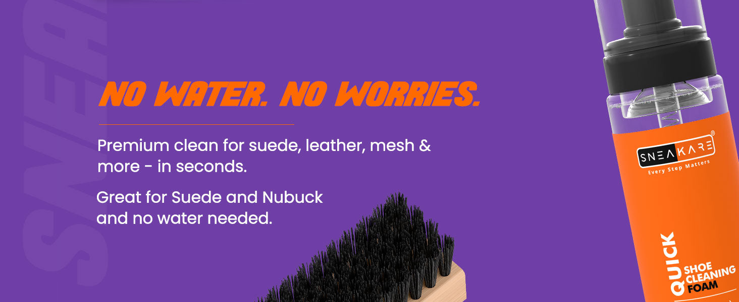 It’s safe on all shoe materials including leather, canvas, mesh, suede, and nubuck. For delicate materials like suede and nubuck, always use a soft brush.