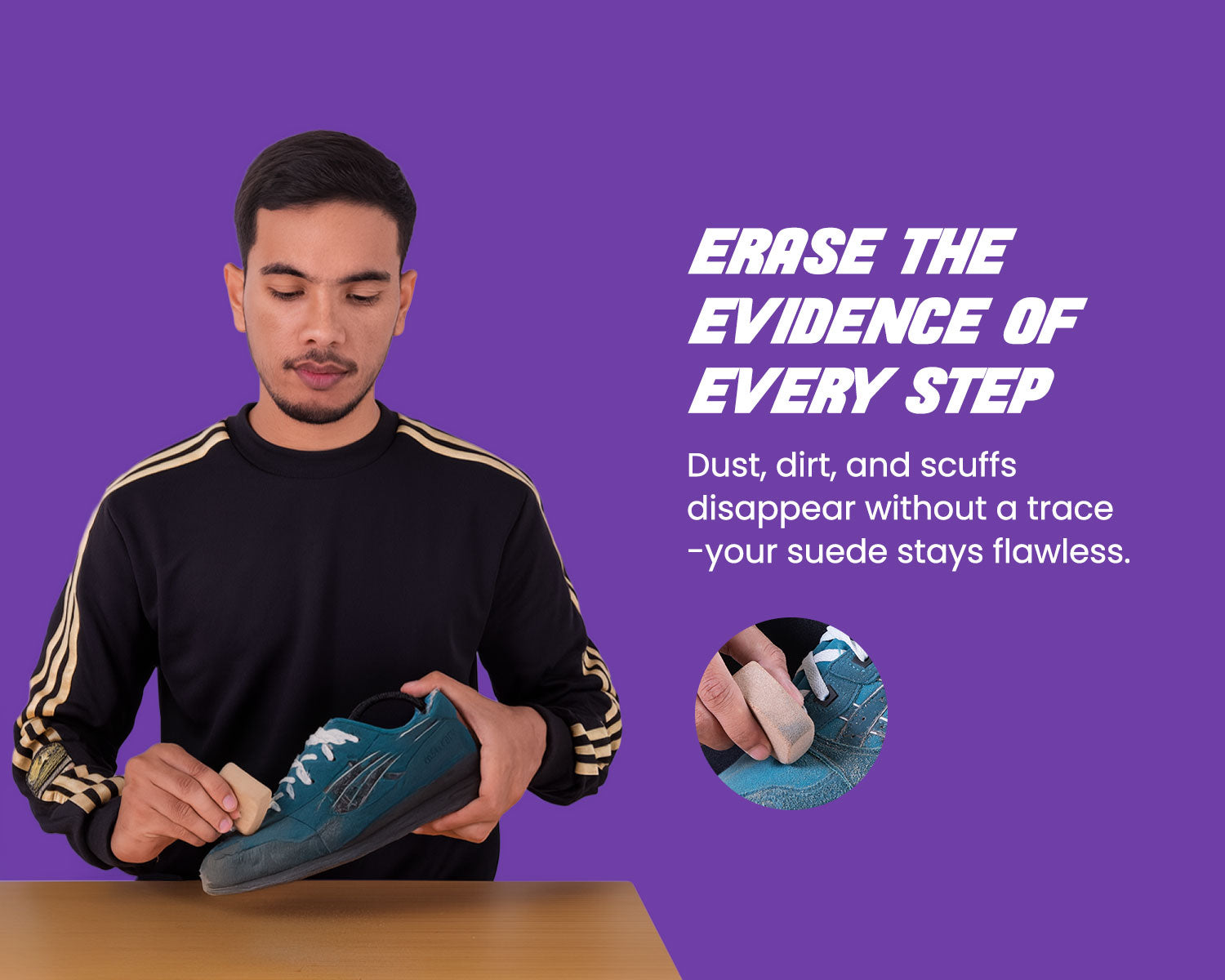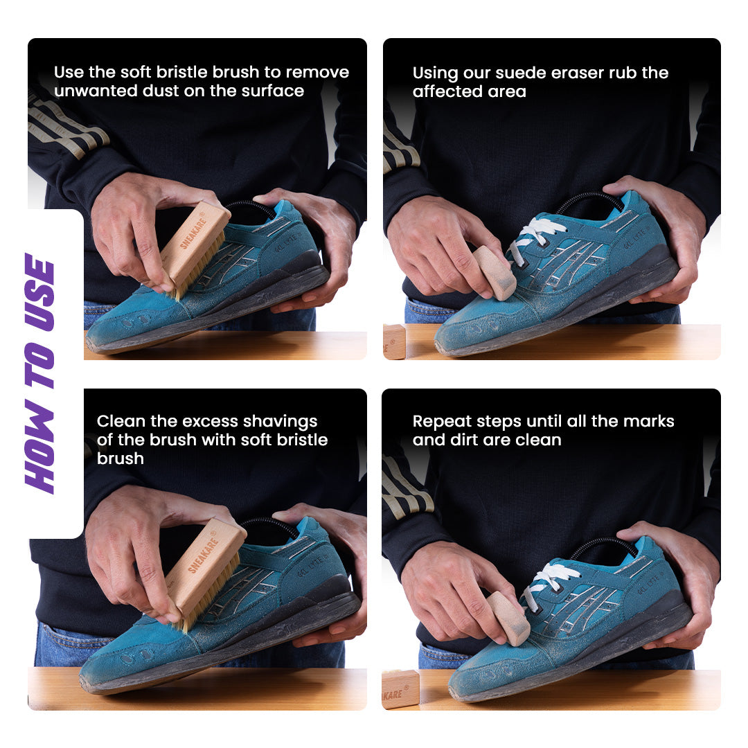 Effortlessly revive your suede and nubuck shoes with the Sneakare Suede Eraser. Designed to lift dirt, scuffs, and stains without water, it restores the natural texture and colour of delicate materials. A quick, safe and mess-free solution to keep your sneakers looking fresh and premium.